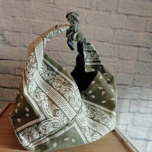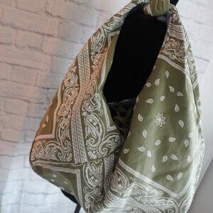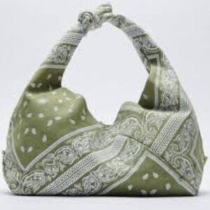 Zara Paisley Bandana print sling bag in green and white. Blue lining. Never worn.