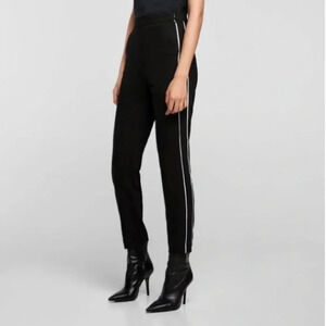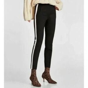 Zara Pants High Waisted Slim Side Stripe Ankle Cropped Trousers Black Small