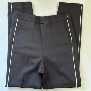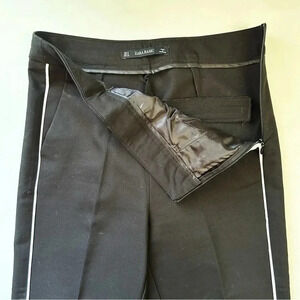Zara Pants High Waisted Slim Side Stripe Ankle Cropped Trousers Black Small