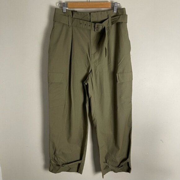 Zara Pants Womens size large Olive Green Paperbag Waist Belted Tapered Cargo NWT