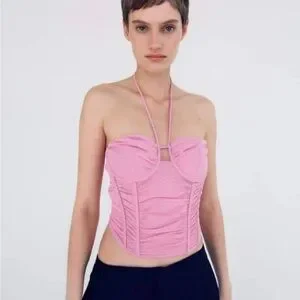 Zara Pink Halter Ruched Bustier