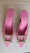 Elegant pink mules with a woven texture. Features a pearl-adorned buckle. Perfect for adding flair to any outfit.