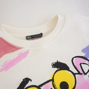 Zara Pink Panther Collab White Pink Paint Splatter Crewneck Sweater S
