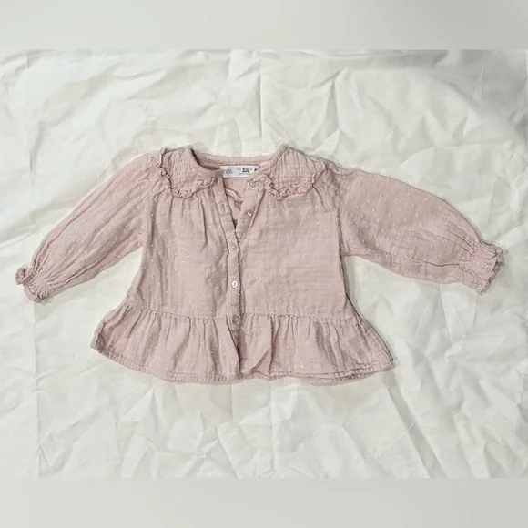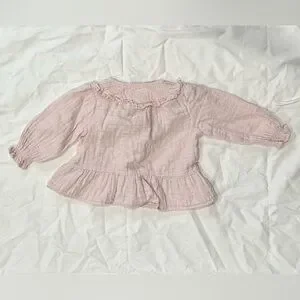 Adorable pink baby blouse with ruffled details. Perfect for a cute and comfy look.