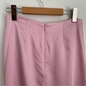 Zara Pink Satin Midi Slip Skirt Ruched Front Slit Sz S Womens