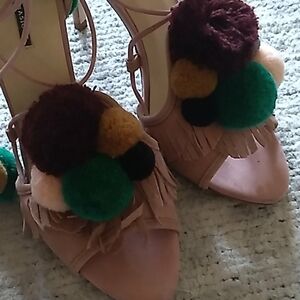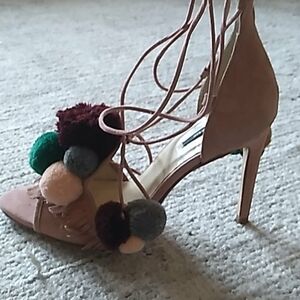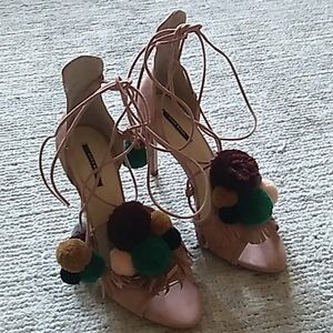 Only worn once Zara pink suede pom pom lace up heels.