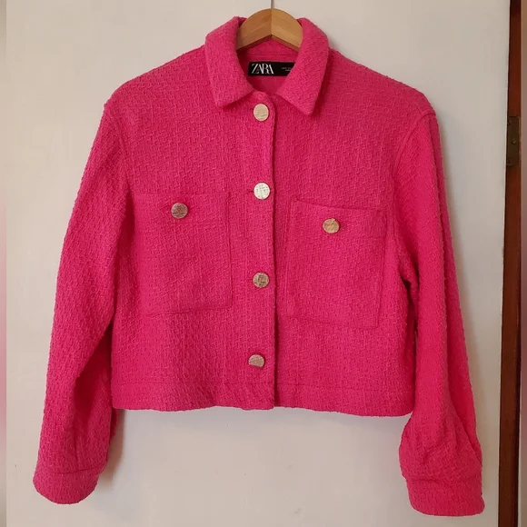 Zara Pink Textured Button Up Jacket