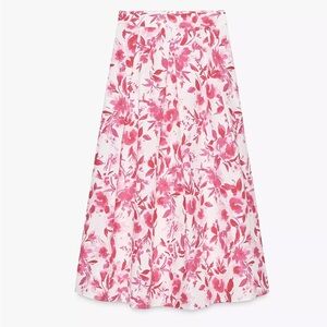 Zara Pink & White Floral A-Line Midi Skirt – Size XS