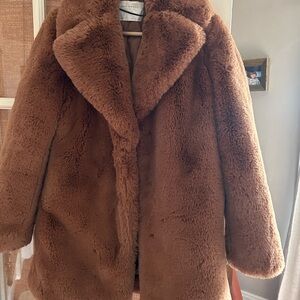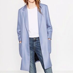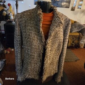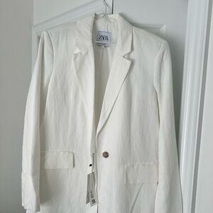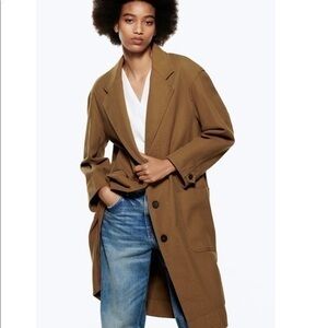 The shacket is longer than shown in the styled photo, approx length is 39”