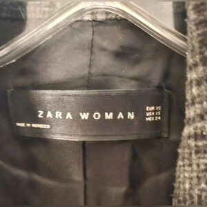 Zara Plaid Double Breast Oversized Pocket longline Blazer sz XS Black&Gray