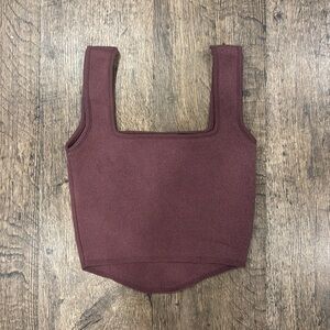 Elegant plum knit top with a chic design. Ideal for versatile styling. Imperfection seen in photo under left pit. See photos for measurements 🥰 stretchy material.