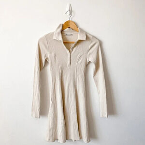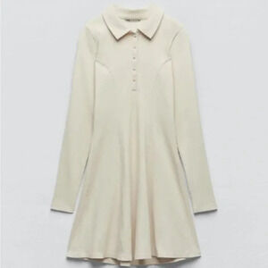 Zara Polo Ribbed Knit Stretch Long Sleeve Mini Dress Beige Sand Size Small