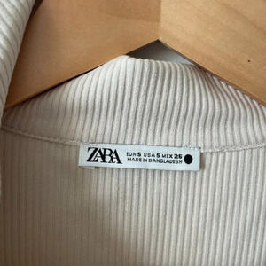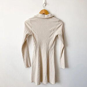 Zara Polo Ribbed Knit Stretch Long Sleeve Mini Dress Beige Sand Size Small