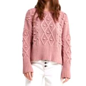 Zara Pom Pom Cable Knit Bobble Cotton Blend Sweater