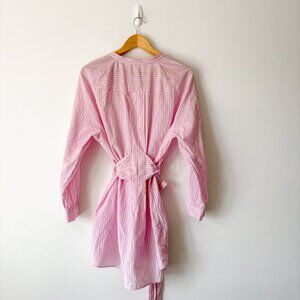 Zara Poplin Shirt Tunic Dress Pink White Striped Cotton Size Large
