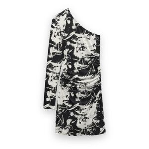 Zara Printed Asymmetrical One Shoulder Mini Dress Black & White Print US L
