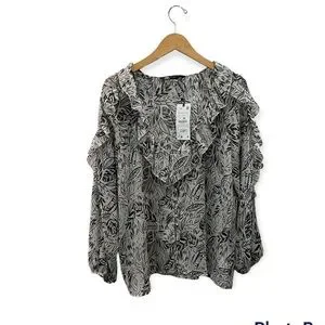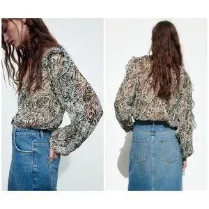 Zara Printed Ruffle Blouse