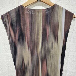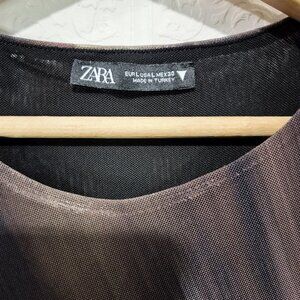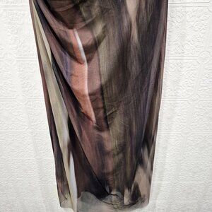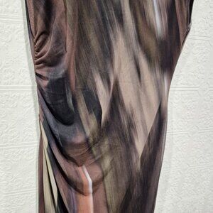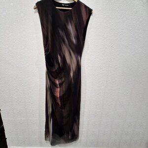 Zara Printed Tulle Abstract Mesh Maxi Cap Sleeve Dress size Large