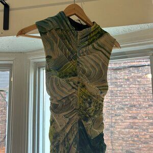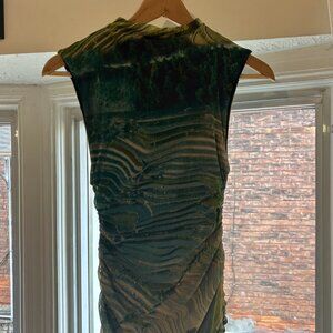 Only worn twice! Love this dress just trying to clean out my closet so no longer have need. Small sizing and runs short. I am 5'11 and it was quite short on me but manageable for a night out/if you are a bit smaller. No stains or rips on dress - in excellent quality.