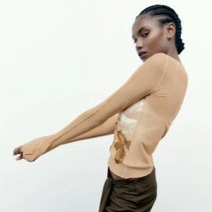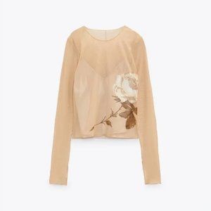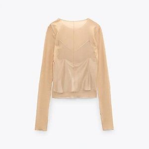 Zara semi-sheer top with round neck and long sleeves. Interior lining with matching straps. Color: beige