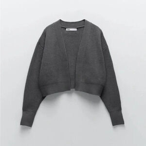 Zara Purl Knit Open Front Ribbed Knit Cardigan Sweater Grey Size Medium