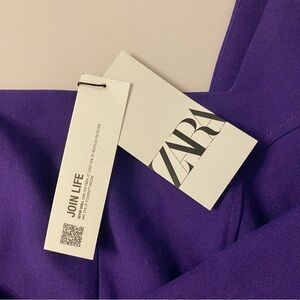 Zara purple long sleeve crop top. New with tag. Square neckline. Elastic band across the back of the shirt. Invisible side zipper closure. Excellent condition.