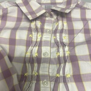This Zara button-down shirt features a soft plaid pattern in purple and white, crafted from a lightweight cotton blend. Its casual design and gentle color scheme make it perfect for everyday wear, offering both style and comfort. Roll up sleeves secured with a button.