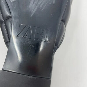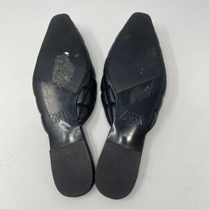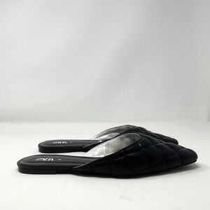 Zara Quilted Vegan Leather Flat Mules Shoes Black Size 7.5