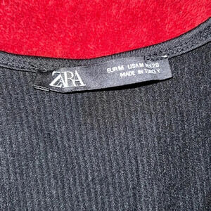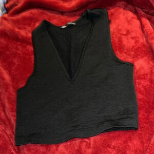 Zara Racer black Ribbed deep V-neck crop tank top Sz M