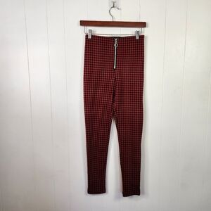 Zara Red Black Buffalo Check Mini Plaid Zip Strech Knit Pants High Rise Leggings