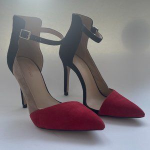 Zara Red Black Tan Suede Colorblock Pointed Heel Strap Sz 6