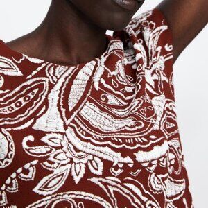 Zara Red Brown White Bohemian Embroidered Shift Dress Size Small Short Boho S