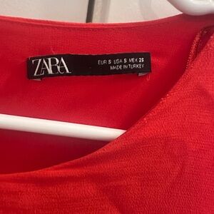 Zara Red Flair Sleeve With Overlay Flowy Dress Size Small Women’s