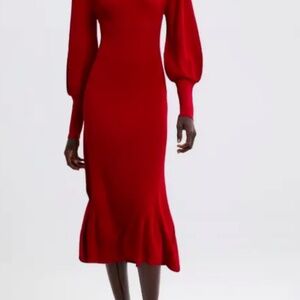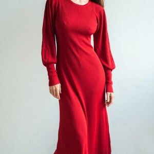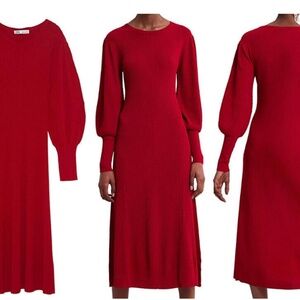 Zara Red Puff Sleeve Ribbed Knit Jumper Sz. M