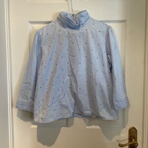 Stylish red blouse with ruched front. Long sleeves and collared neckline. Perfect for any occasion.