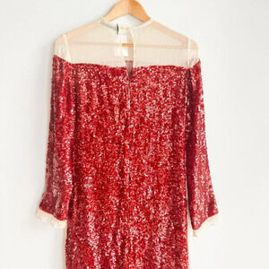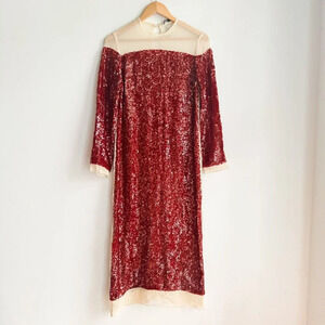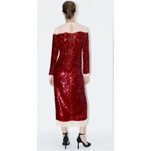 Zara Red Sequin Midi Sheath Holiday Dress XS