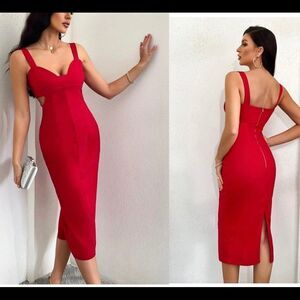 ZARA Red strappy cut out bodycon dress Sz XS NWT
