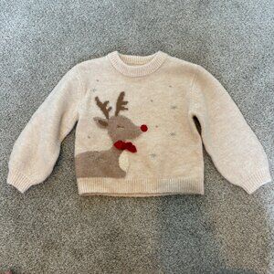 Zara Reindeer Knit Sweater 2-3 years Toddler Cream Christmas