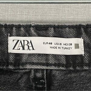 Zara Jeans. Women's tag size 8. 100% Cotton. Gray with factory fading and whiskering. Pocket edge distressing. High rise, straight leg mom jeans.