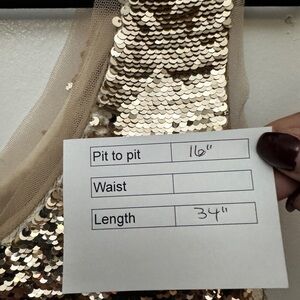 The stunning reversible sequins on this dress go from a gold sequin to a classy champagne sequin at the brush of a hand.