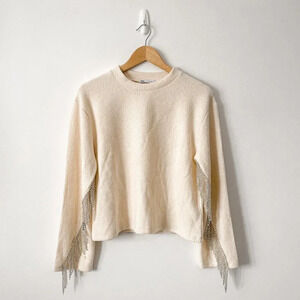 Zara Rhinestone Soft Knit Round Neck Sweater Ecru White Size Medium NWT