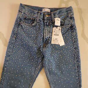 Add some β¨sparkleβ¨ to your denim collection with these dazzling Zara jeans! Featuring an all-over rhinestone embellishment, these jeans are perfect for a night out, a concert, or just turning heads on the street. Brand new with tags (BNWT), never worn and ready to shine!