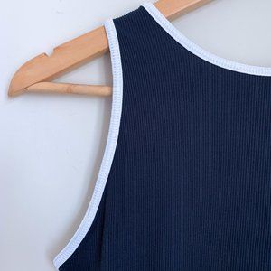 Zara High-Neck ribbed bodysuit in navy blue with white contrast trim