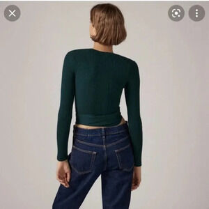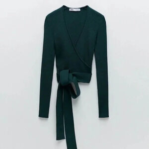 Zara Ribbed Knit Long Sleeve Crossover Sweater Top Forest Green Size Large