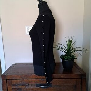 Zara Ribbed Knit Sweater Size Medium Black Crewneck Studded Chevron Pattern