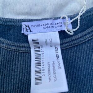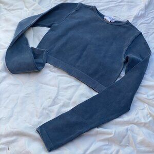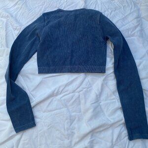 Ribbed crop top from Zara in a washed denim blue/navy shade. Fitted silhouette with long sleeves and soft stretch fabric — easy to style with jeans, skirts, or layers.