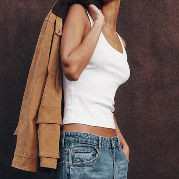 Elevate your casual wardrobe with this Zara white ribbed tank top. Perfect for layering or wearing alone, it offers a comfortable and stylish fit.