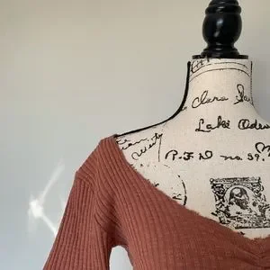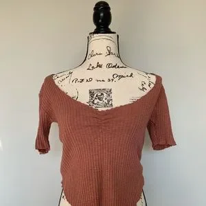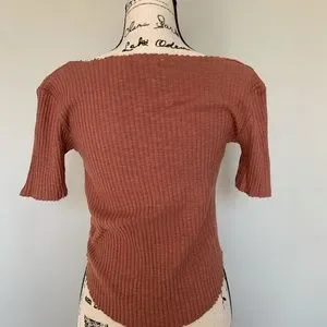 Never Worn Before! Ribbed, pink-is, brick coloured top. Is super stretchy and comfortable. The seams are original and are meant to look like that!