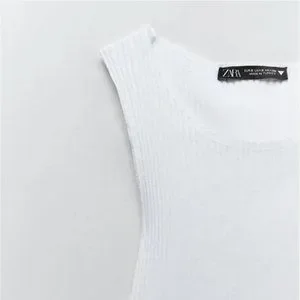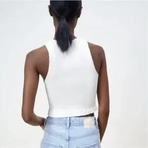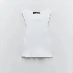 Zara round neck ribbed sleeveless top. Round neck and subtle frill hem. Midi crop. Great elevated basic!