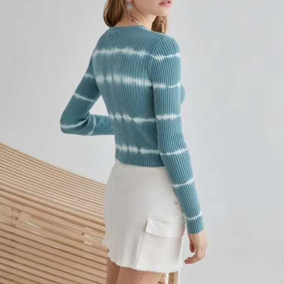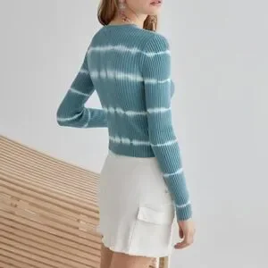 Zara Ribbed Turquoise Tye Dye Cardigan